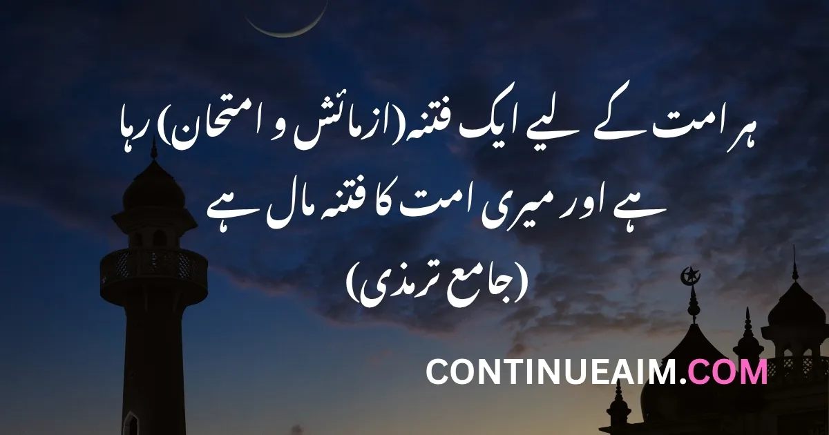 ہر امت کے لیے ایک فتنہ(ازمائش و امتحان) رہا ہے اور میری امت کا فتنہ مال ہے