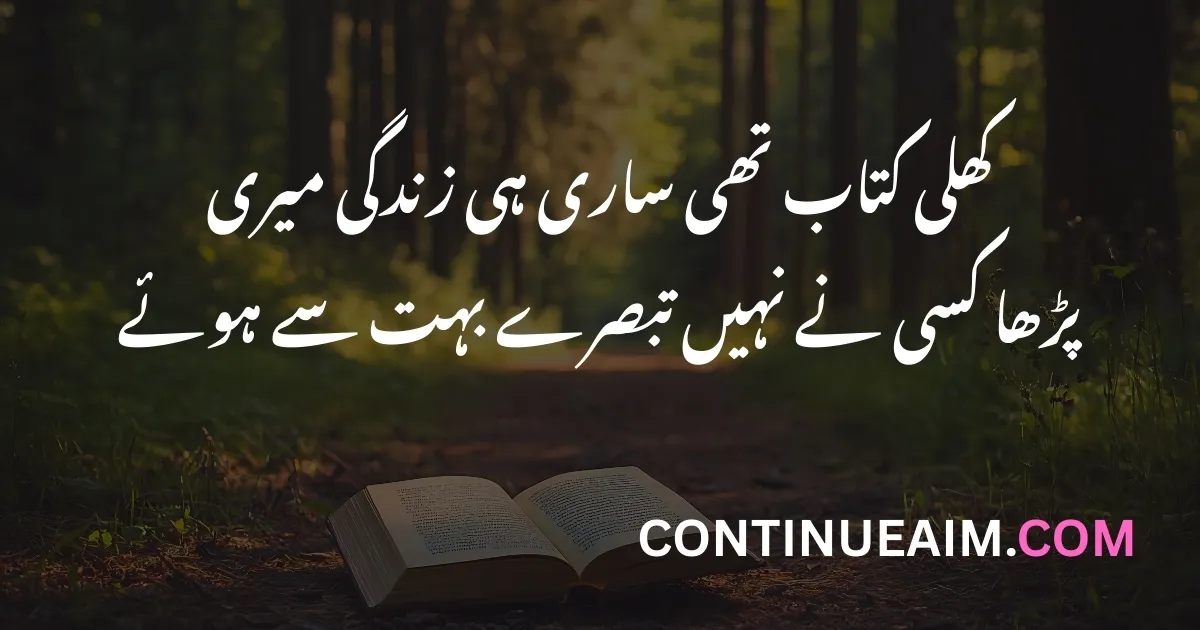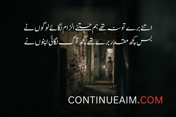 These two-line Urdu shayari quotes are perfect for WhatsApp status, Instagram captions, and Facebook posts. They speak about truth, patience, fake people, and dignity.